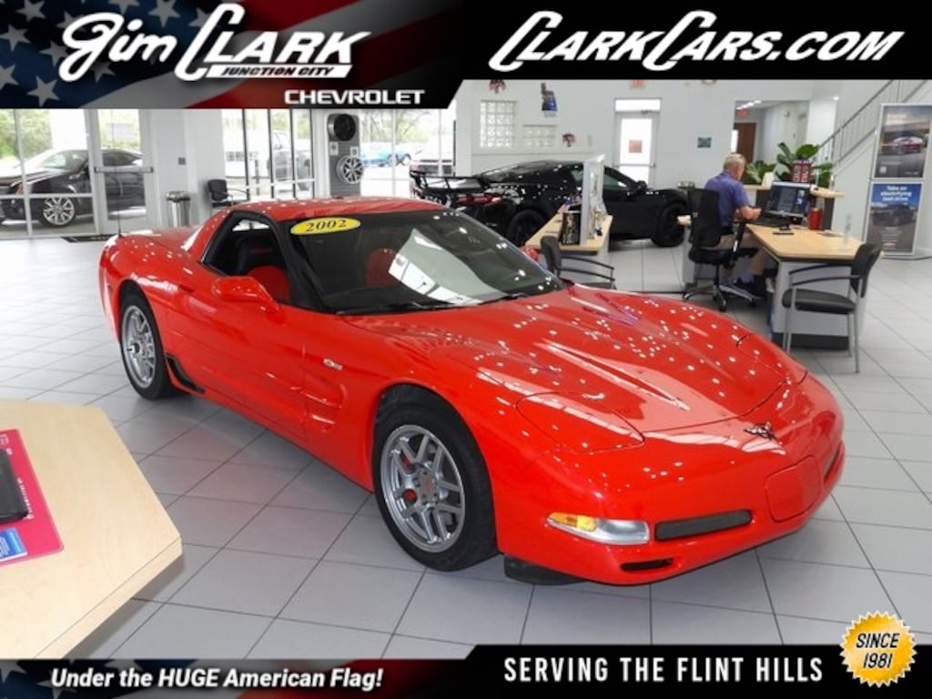 This 2002 Corvette Z06 offers a legendary combination of pure speed, razor-sharp handling, and stunning style that has secured its status as a modern classic. With its Clean CARFAX and low mileage, this performance machine is ready for its next owner. Jim Clark Chevrolet has been proudly serving the Flint Hills for 40 years, and we invite you to experience the transparent pricing and quality commitment we are known for. Don't let this local trade-in pass you by; contact us today to schedule your private showing and feel the 405 horsepower for yourself!