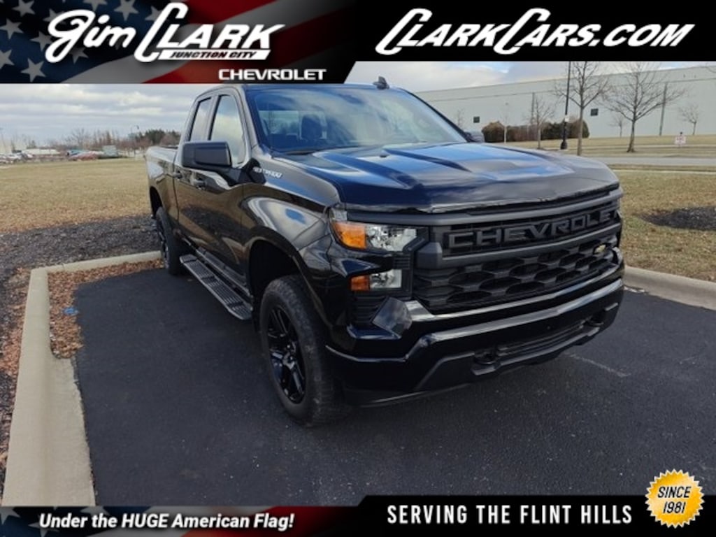 Ready to experience a truck that combines "Triple Black" style, power, and cutting-edge technology? Don't miss your chance to own this stunning 2022 Chevrolet Silverado 1500 Custom. Our team at Jim Clark Chevrolet has been proudly serving the Flint Hills for over 40 years, and we're ready to make your car-buying experience straightforward and enjoyable. Visit us today to take this Silverado for a test drive and discover for yourself why it's the perfect vehic
