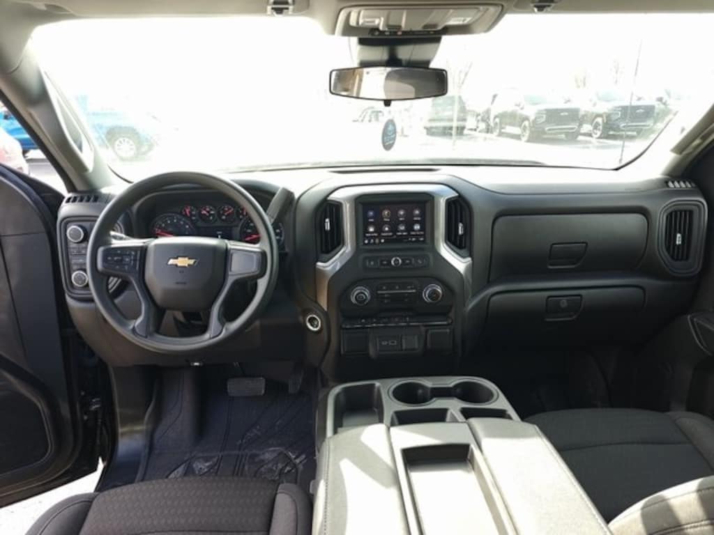 Convenience and Comfort: Enjoy a well-equipped cabin featuring a 10-way power driver seat with lumbar support, a 40/20/40 front split-bench seat, and a rear 60/40 folding bench seat. This Silverado includes the Custom Convenience Package, remote vehicle starter system, remote keyless entry, and 120-volt power outlets in both the instrument panel and the bed.