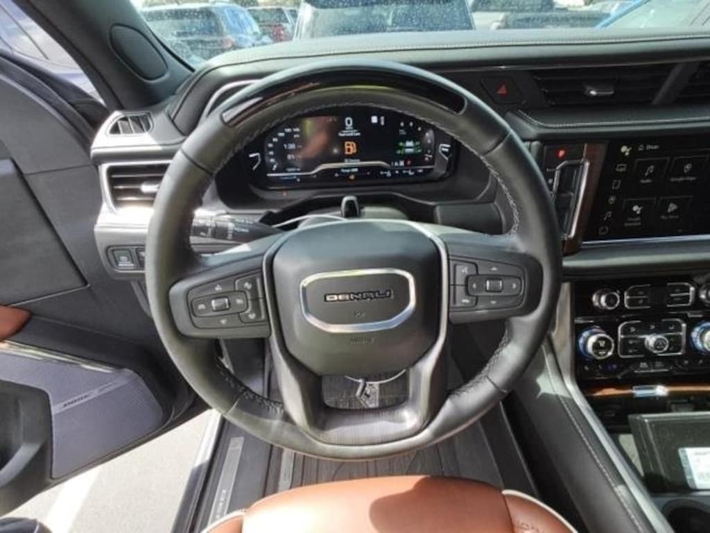 Capability & Performance: This Yukon Denali Ultimate is powered by a robust EcoTec3 6.2L V8 engine paired with a smooth 10-Speed Automatic with Overdrive transmission and 4WD. Experience superior handling with Magnetic Ride Control Suspension, Air Ride Adaptive Suspension, Electronic Limited Slip Differential (eLSD), Hill Descent Control, and a 3.23 Rear Axle Ratio. Practical towing features include the Max Trailering Package, Extra Capacity Cooling System, Hitch View, Integrated Trailer Brake Controller, and Smart Trailer Integration Indicator. Performance is enhanced by the Dual Exhaust System. Stylish accents: 22" x 9" 6-Spoke Carbon Flash Metallic Aluminum Wheels and a Sport Pedal Cover Kit (LPO).